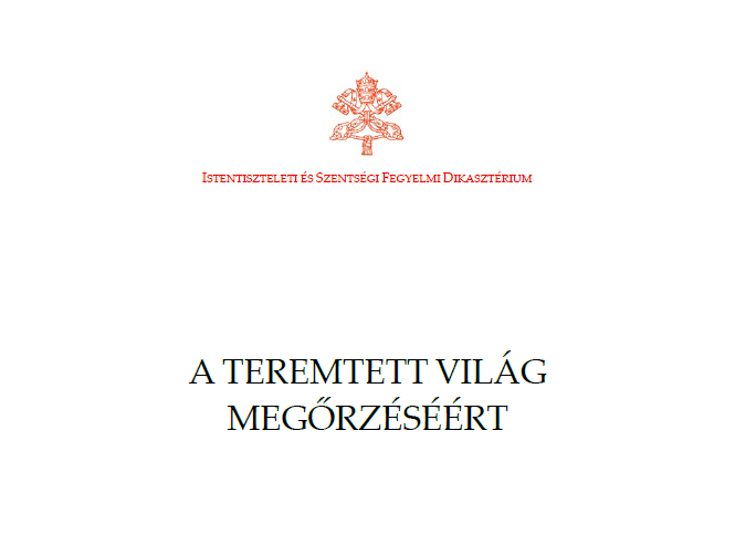 Az Istentiszteleti és Szentségi Fegyelmi Dikasztérium megerősítette a "Missa pro custodia creationis" - „A teremtett világ megőrzéséért" votív mise magyar nyelvű fordításának szövegét, amelyet honlapunkról az alábbi oldalon érhetnek el (a "Dekrétum, enciklika, határozat, körlevél" kategória alatt):
